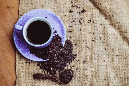 Riceberry,Hot tea with brown hemp woven fabric, healthy drinks, cure diseases