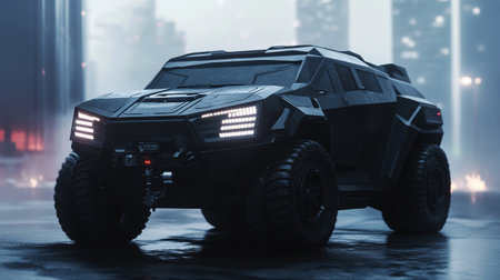 3D rendering of a brand-less generic SUV in the fog