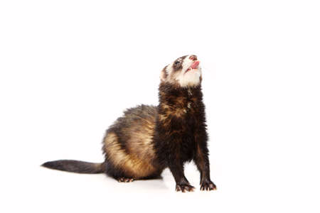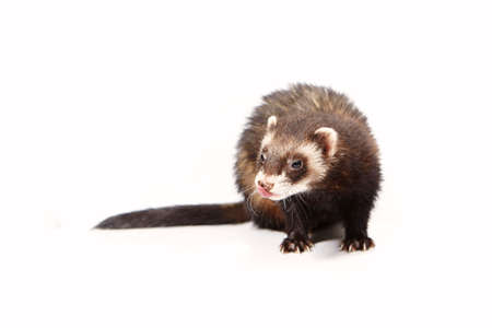 Nice standard ferret on white background posing for portrait in studio