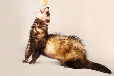 Relaxing funny ferret portrait in studio on light background