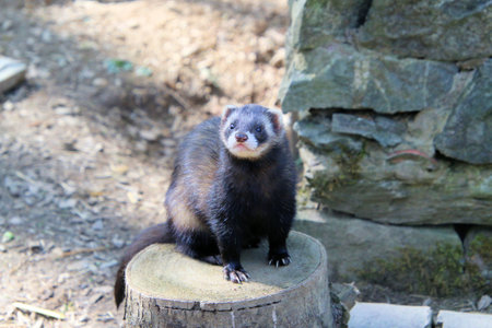 Ferret posing and relaxing on stone rock