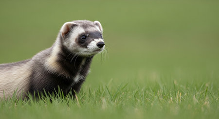 a cute little ferret on the green grass