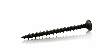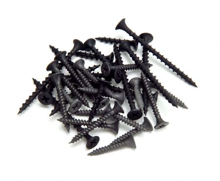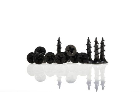 Black screws of self-tapping screws of same sizes isolated on white background.
