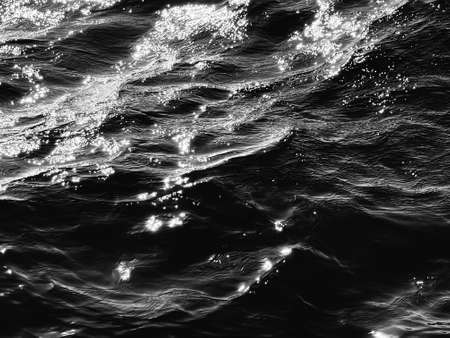 Sea, texture and coastal nature concept. Ocean water as black and white, monochrome surface background