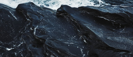 A captivating scene of dark waves merging with white foam on a black sand beach, showcasing the unique beauty of coastal nature and tranquil waters at sunset.