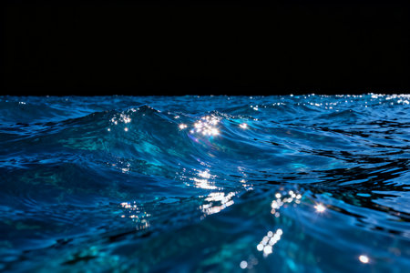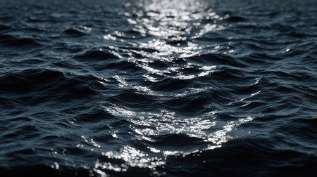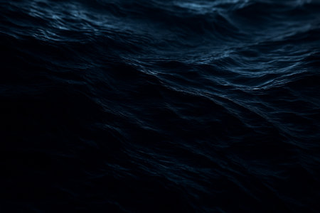 AI generated dark ocean water surface with flowing waves deep blue tones moody calm atmosphere natural power mystery and clean copy space
