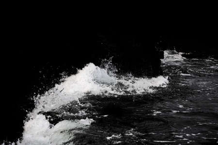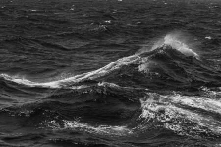 Boat wake waves in the Drake Passage, causing spray to come off the water.