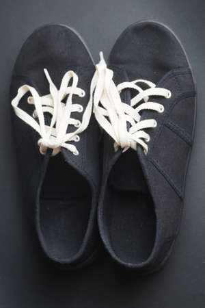 Black shoes boot sneakers close-up