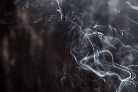 Background image of a wisp of smoke on a dark background. The texture of the flowing smoke. Frozen smoke on a dark background. Graphic resources dark backdrop. Texura of white clouds of fog. Curls of smoke frozen in motion.