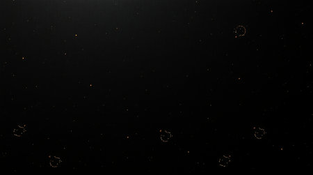 This image presents an abstract composition of shimmering particles set against a deep black backdrop. The scene displays various sizes of blurred, glowing orbs and specks. The overall effect evokes a sense of depth and cosmic suggestion. Ideal for backgrounds and creative projects needing a sophisticated touch.