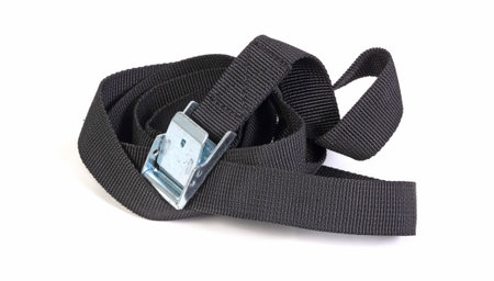Black ratchet strap isolated on a white background