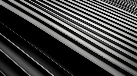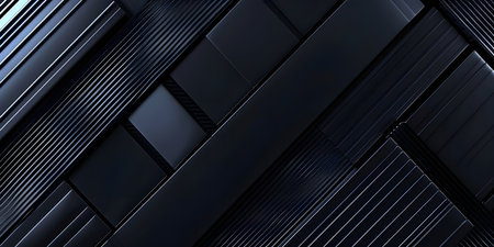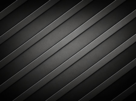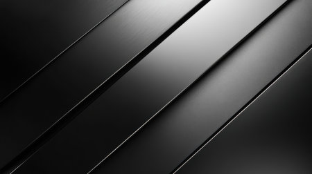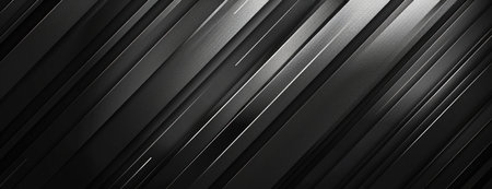 Illustration of a dark, diagonal pattern with reflective metallic lines. The diagonal lines create a contemporary design with contrasting tones of black and silver. The lines overlap in a stylized manner, creating an intriguing visual effect. The overall visual impression is one of sophistication and elegance, with a touch of futurism.