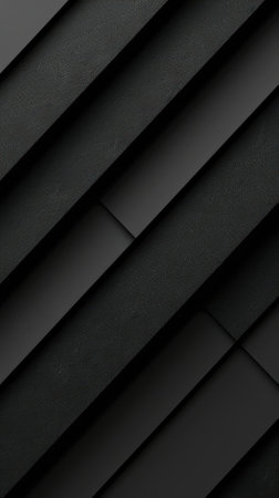 This image showcases a black background with a combination of diagonal lines and flat, solid sections. The composition highlights a minimalist design with repeating geometric elements. It features a modern style with subtle textures, suitable for various design applications. This image could be used for web design or print.