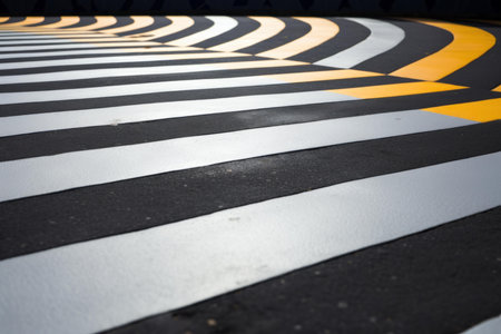 Reflective Striped speed bump on street. Control traffic warning. Generate Ai