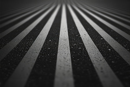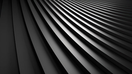 This image presents a modern abstract design featuring a pattern of diagonal lines. The background showcases a gradient of dark shades with hints of light reflecting across the lines. This design can be used for various purposes like website backgrounds or creative graphics. The image offers a clean and contemporary style suitable for commercial or editorial applications.