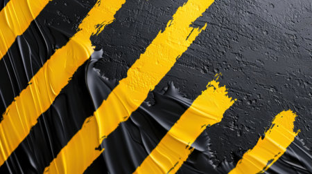 This image features bold yellow stripes painted on a textured black surface, showcasing a dynamic interplay of colors and brush strokes that evoke an industrial aesthetic. Perfect for design projects.