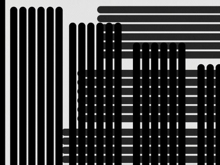 Bold abstract pattern of overlapping black and white diagonal stripes. Creates a high-contrast geometric design with depth. Ideal for modern art, visual studies, or graphic backgrounds.