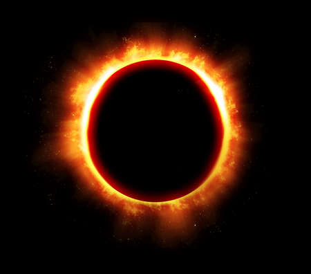 Solar eclipse. Orange sun in a black dark sky.