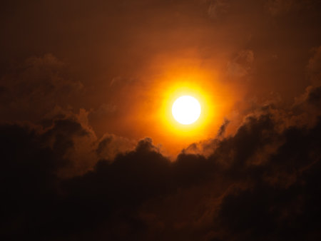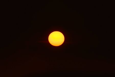 Orange sun disk isolated on smoky sky