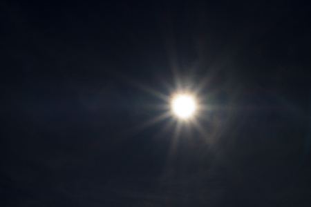 Bright sun and clouds against a dark blue sky