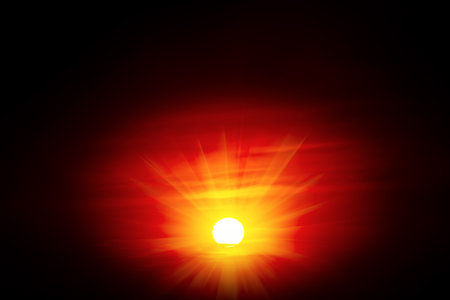 The Sun Radiates in a Circle on a Cloudy Day in Red Background