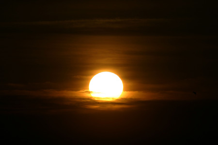 Orange sun in the dark sunset sky