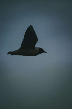 The black-headed gull (Chroicocephalus ridibundus) (Larus ridibundus). Bird in flight with its wings spread wide, Black Sea