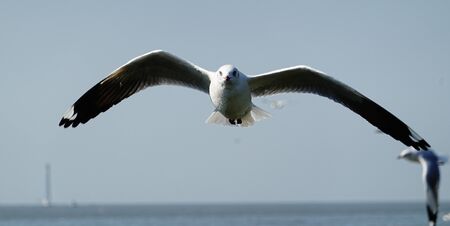 Close-up of a seagull flying. Animals, birds, freedom and loneliness concepts.
