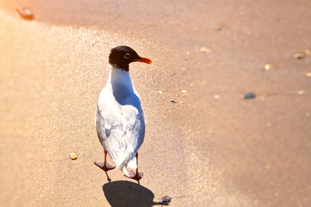 A beautiful black-headed gull on sea