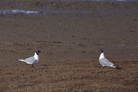 Two seagulls standing on the ground. The Island Of Bolshoi Begichev. The Laptev Sea. Russia.
