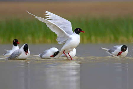 Brown-headed Gull on lake,Migratory seagulls flock to the Bang Pu Seaside, Thailand during November and April.