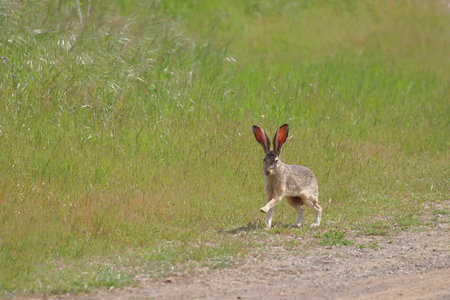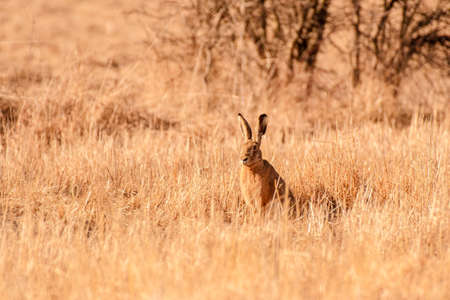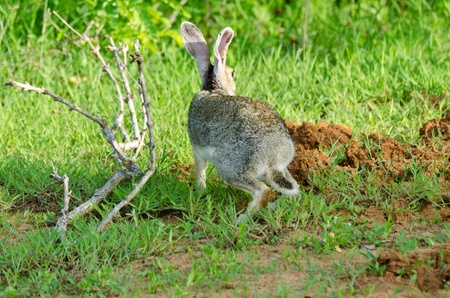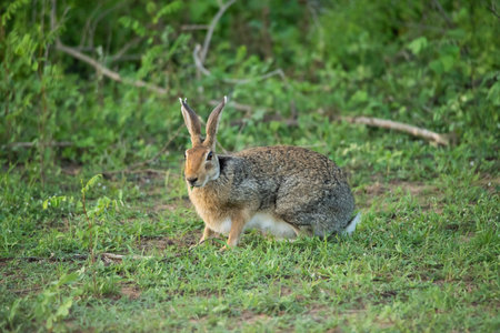 Scrub hare running around early in the morning