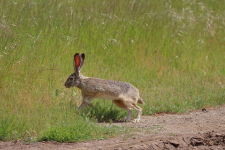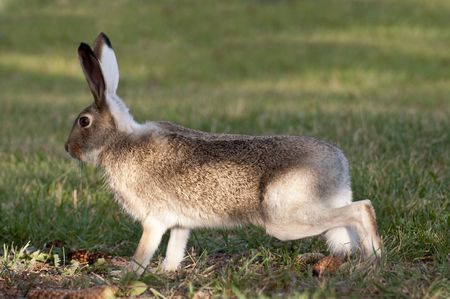 Jackrabbit eat green grass