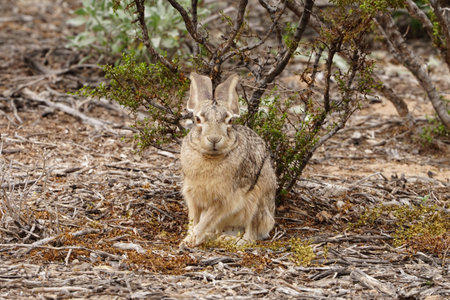 A brown cottontail rabbit in Patagonia, Argentina.