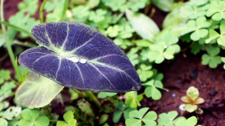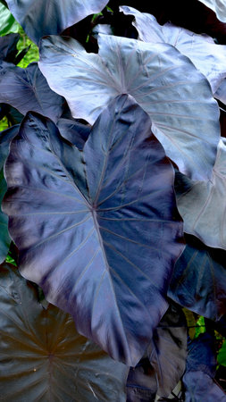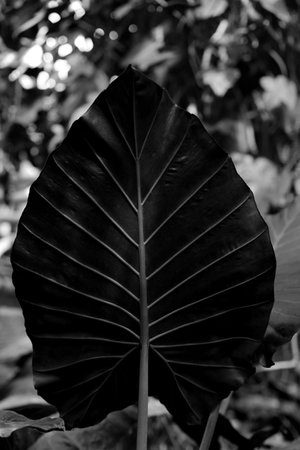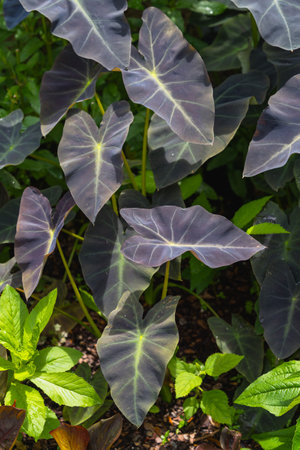 Colocasia Black Magic, Black color and heart shape leaf plant, Ornamental plant in a garden