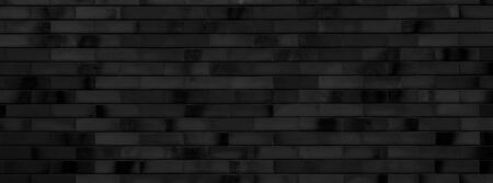 Panoramic texture of black old brick wall, brickwork background for design or backdrop