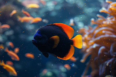 School of fish swimming in tropical reef, beauty in nature generated by artificial intelligence