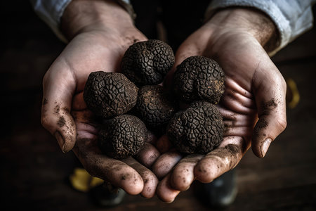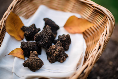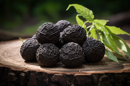 Realistic photo of a bunch of black truffle. top view vegetables scenery