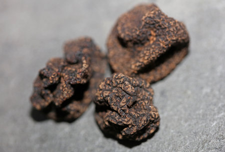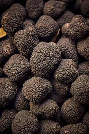 Black wild summer truffles close up family tuberaceae botanical modern high quality big size background print kitchen home decoration
