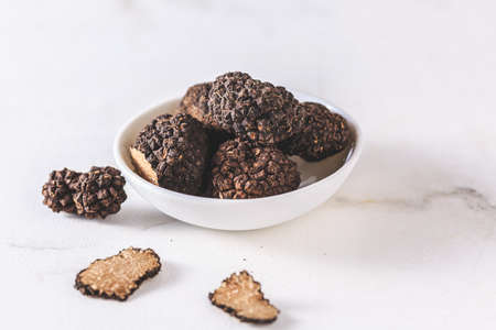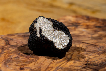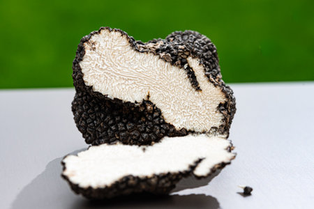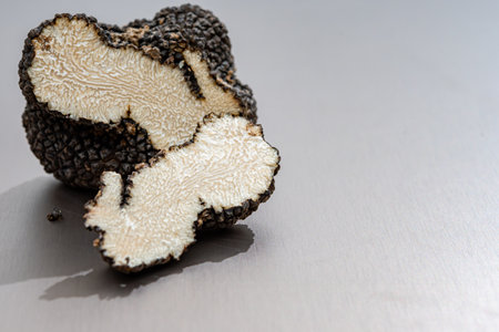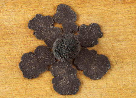 Perigord Truffle, tuber melanosporum, Mushroom cut in Slices