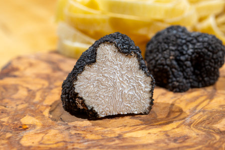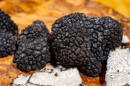 Italian black summer truffle, tasty aromatic mushroom, gourmet cuisine, close up