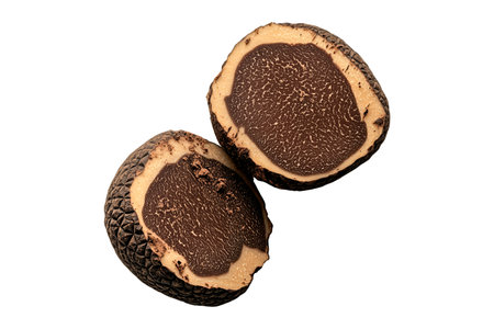 Fresh black Norcia truffles isolated on white transparent background, great for culinary and gourmet themes.