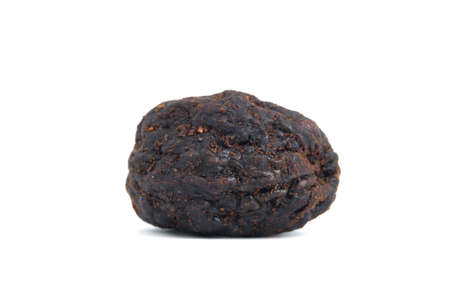 Closeup single garcinia cochinchinensis (called Asam kandis in Indonesia) isolated on a white background with studio lighting