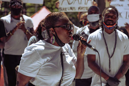 MONTRéAL, CANADA - Jun 07, 2020: Montreal black lives matter peaceful protest over the murder of George Floyd.