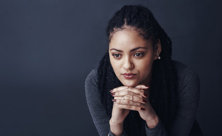 Not every day is going to be easy...Studio shot of a young woman posing against a gray background.