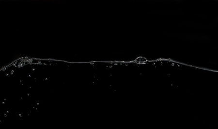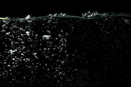 Clear water surface on a black with ripple and bubbles