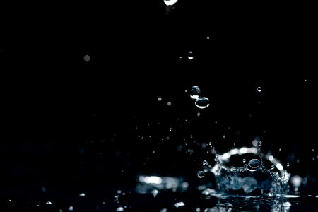 abstract background water drop, splashes on black background.