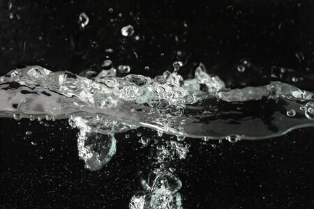 water splash and bubbles wave on black background