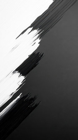 A striking abstract artwork showcasing bold strokes of black and white paint in a dynamic, contrasting manner. The texture and flow of the paint create a modern, artistic representation of duality and balance.