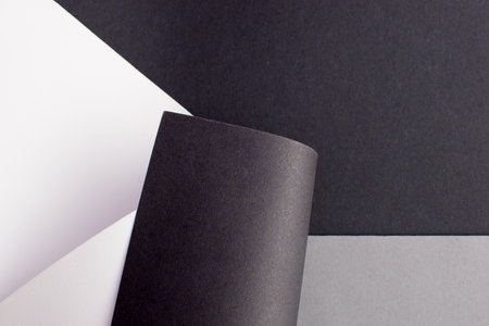 Top view 3D render of minimal colorful black and white, light and dark gray paper composition background with copy space for presentation wallpaper with place for text